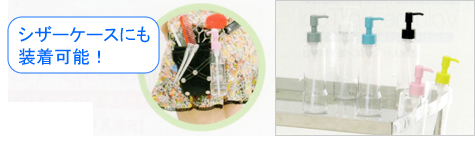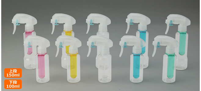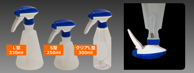 容量の大きなL型・スタンダードなS型・残量がわかる透明タイプの3種類から用途に合わせてお選びいただけます。 ●逆さにしても噴出可能な設計となっています。