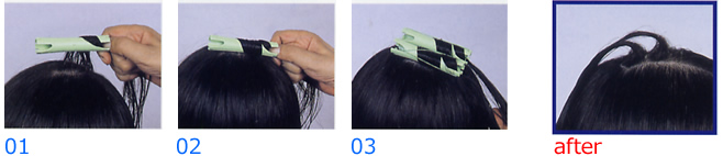 03:毛束を2本目のX型ロッドのX溝に入れます。